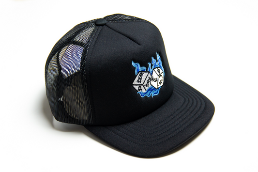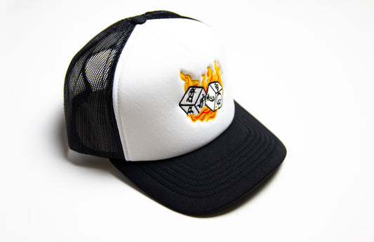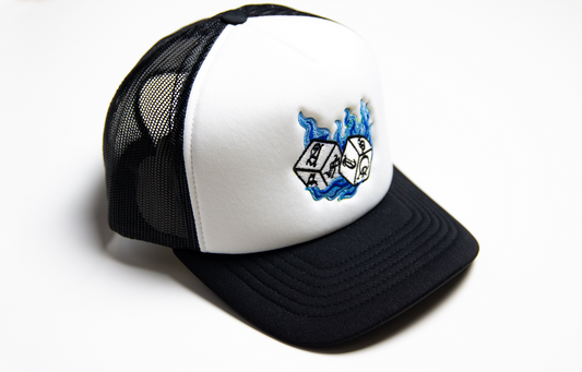 Sold outHot Shooter Trucker Hat (White/Blue)